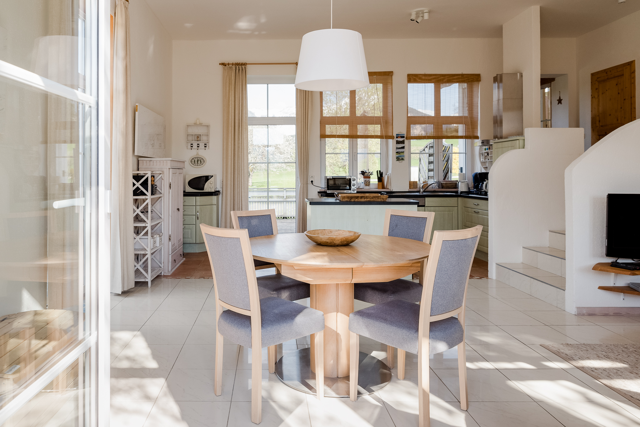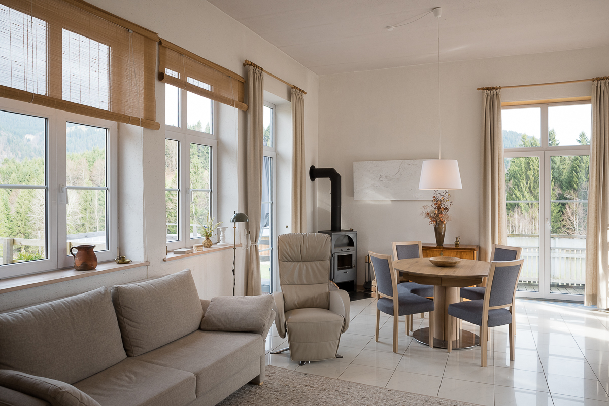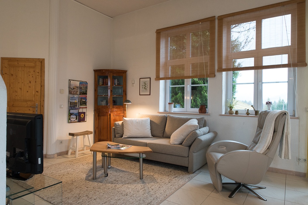 Falls du mal gar nicht vor die Tür willst: Lümmle einfach vor den großen Fenstern und genieße den Bergblick. Ansonsten: Breitband-Internet, TV und entspannt viel Platz.