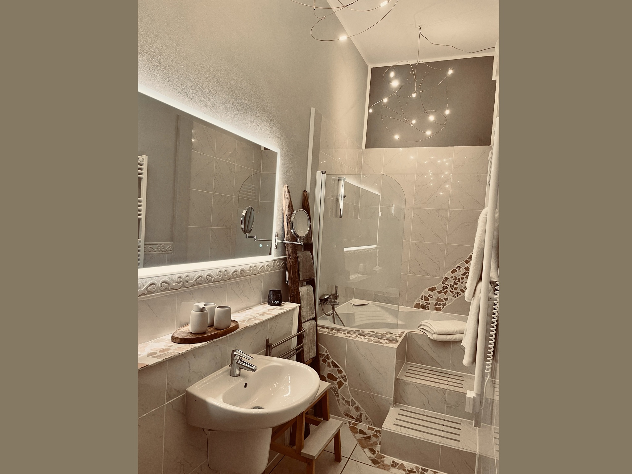 Müde Knochen von der Gipfeltour oder der Skipiste? Das Ferienhaus Alpenlicht belohnt dich mit einem wohltuenden Bad in der Badewanne, einem Sundowner auf der Westterrasse oder einem wärmenden Feuer im Kaminofen.
